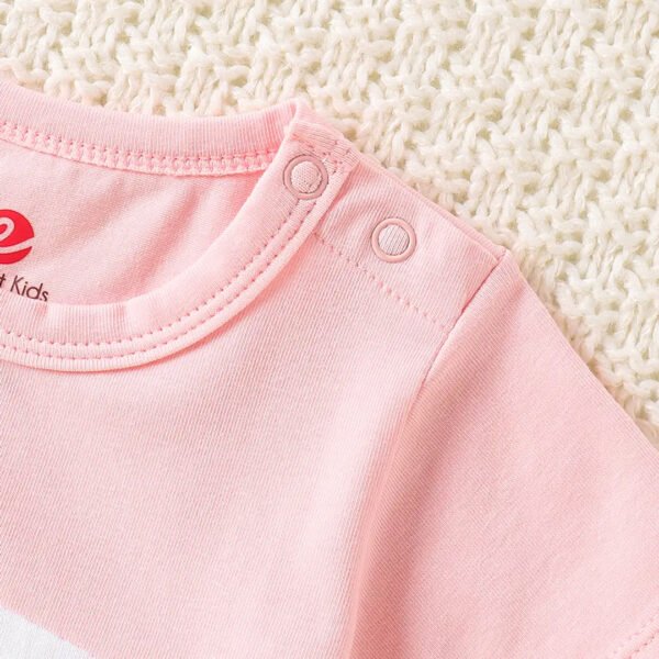 Girls Pink and White Color-Block Print Applique Romper