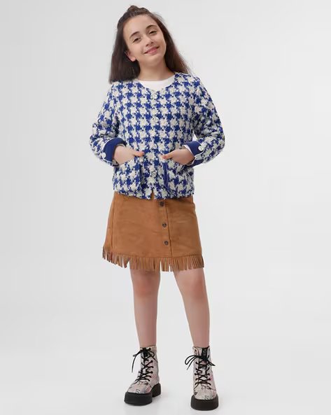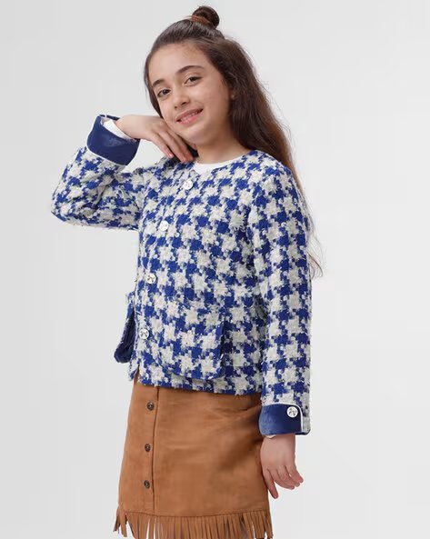 KATE & OSCAR Girls Western Wear Houndstooth Jacket MRP