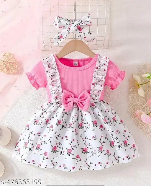 - Name : [Popular Choice] Girls’ Floral Print Short Sleeve Dress with Bow Detail, Round Neck, Summer Casual Style – Polyester and Elastane Blend p